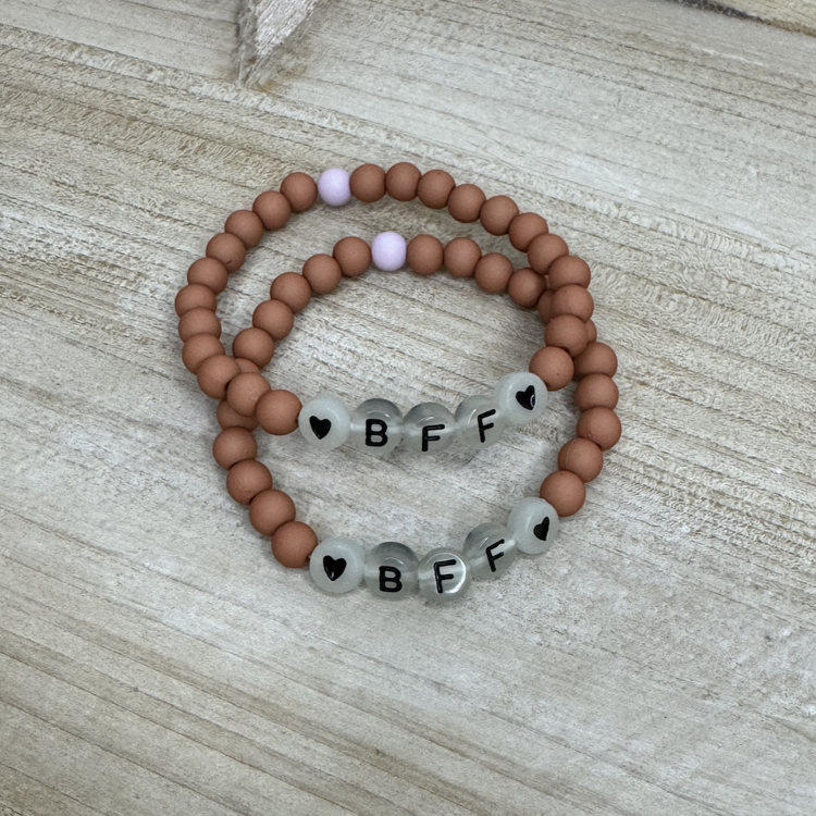 Geef het perfecte cadeau aan je kind en haar beste vriendin om hun speciale band te vieren. De letter kralen lichten op in het donker.